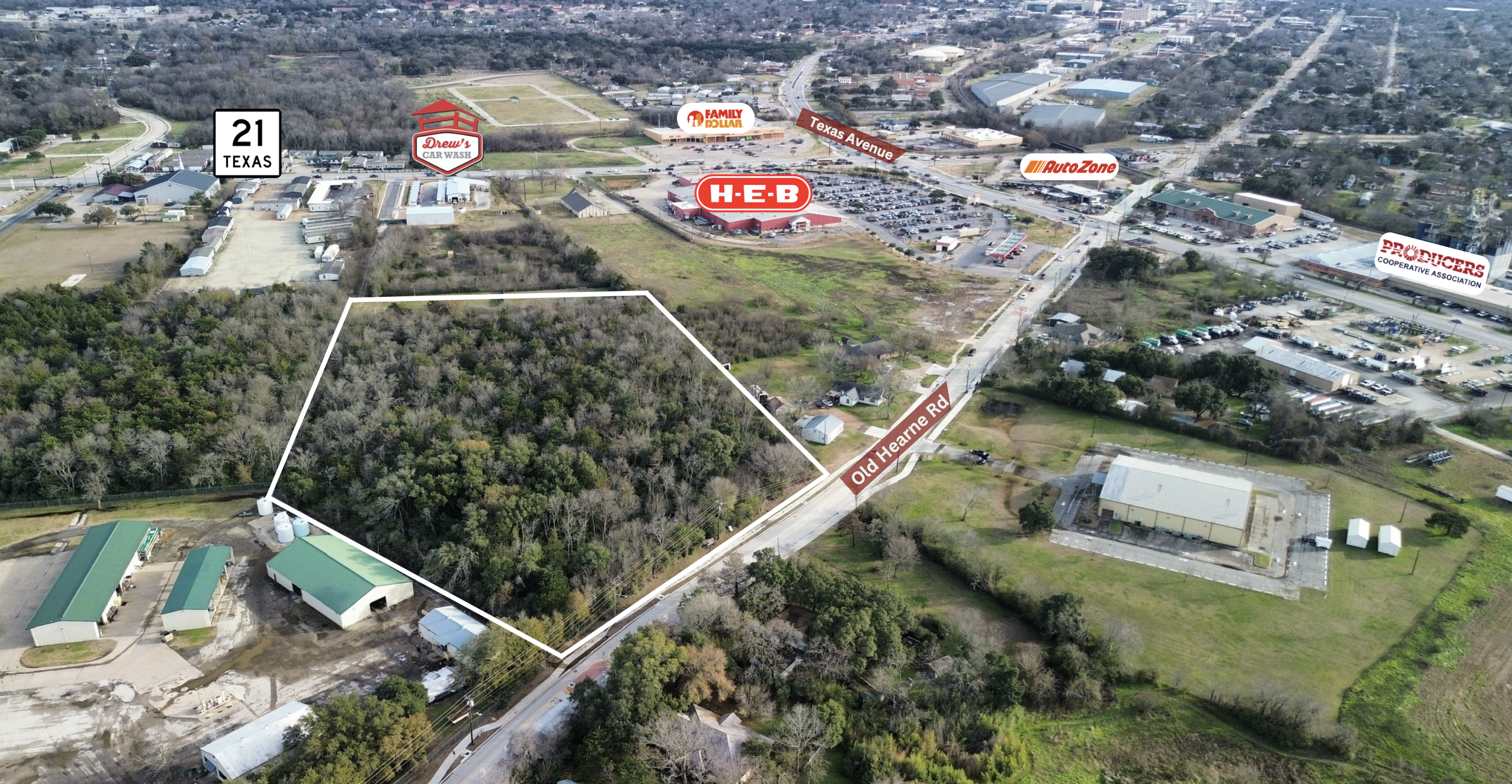 This 5.85-acre unrestricted property offers exceptional commercial or residential development opportunities in a prime location just 6 miles from Texas A&M University. With approximately +/- 370 feet of frontage on recently improved Old Hearne Road and newly installed sidewalks, the property boasts enhanced accessibility and infrastructure. Surrounded by thriving new residential developments and multiple big-box retail centers, this site provides a unique